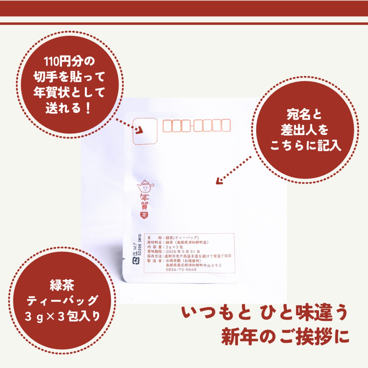 ハガキサイズの袋に緑茶ティーバッグが入っています。